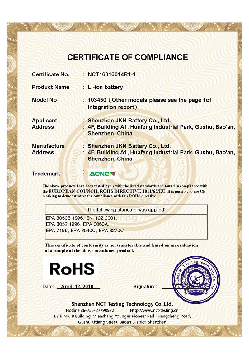 金凱能致力于研發(fā)制造高品質(zhì)的定制化鋰電池組,堅(jiān)持以優(yōu)異的產(chǎn)品、可靠的質(zhì)量、高效的服務(wù),滿足或超越客戶的需求,樹立金凱能品牌形象。金凱能為保證產(chǎn)品質(zhì)量,引進(jìn)完善的電池檢測設(shè)備,采用現(xiàn)代化管理體制,誠信經(jīng)營,發(fā)展創(chuàng)新。 同時(shí)與SGS、北測等檢測機(jī)構(gòu)保持良好合作確保產(chǎn)品滿足相關(guān)認(rèn)證和使用需求。